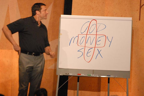 If there's any picture that says a thousand words about psychopaths it's this one. They combine spirituality with materialism and they make them one and the same thing. This is. James Arthur Ray, who went to prison after the deaths of three people in a sweat lodge, has certain features that point to him being a psychopath. This video mentions at 3 minutes, 17 seconds that he play the role of God in a play and this shows that he has a narcissistic god complex about him. At 6 minutes, 3 seconds in this video, the witness mentioned that when James Arthur Ray got out of the sweat lodge and saw the bodies on the ground, he acted like it was no big deal, he didn't seem to have any emotion at all. These motivational speakers are cult leaders without a god and they behave in the same way. They are very superficial and money is an essential part of this cult as this picture shows.
